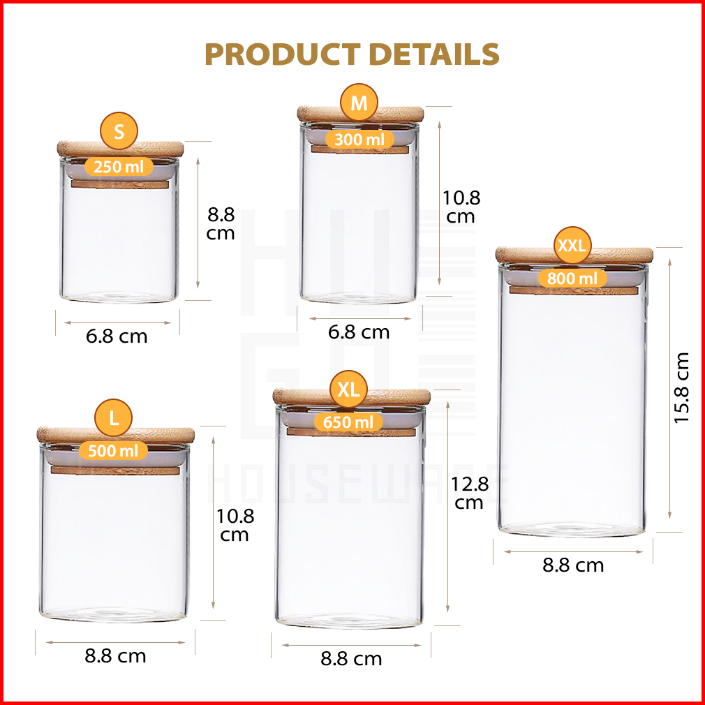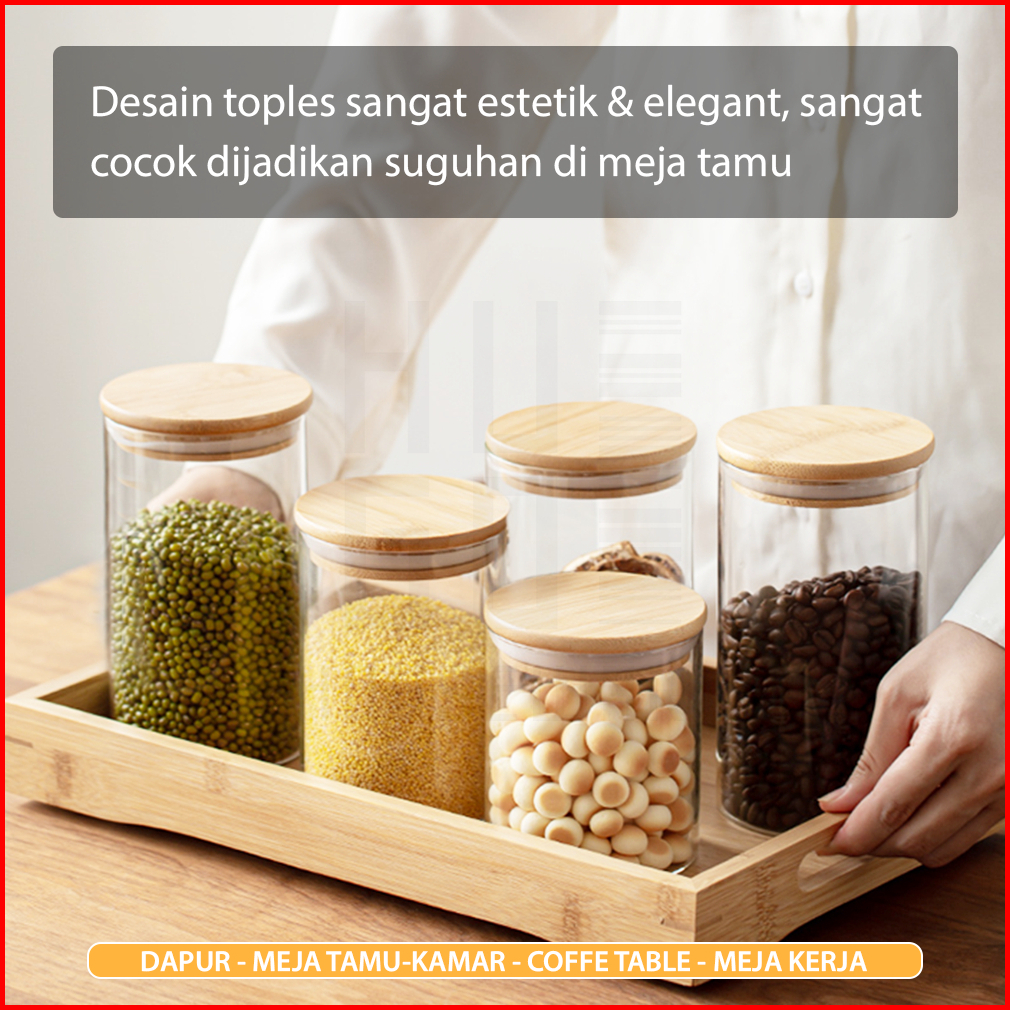 Hugo Toples Kaca Borosilicate Set 4 Pcs Kedap Udara Tutup Bambu Tahan Panas Premium Quality