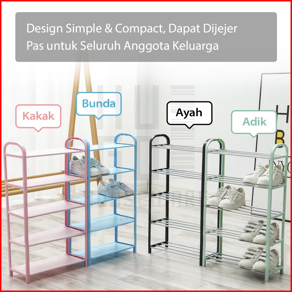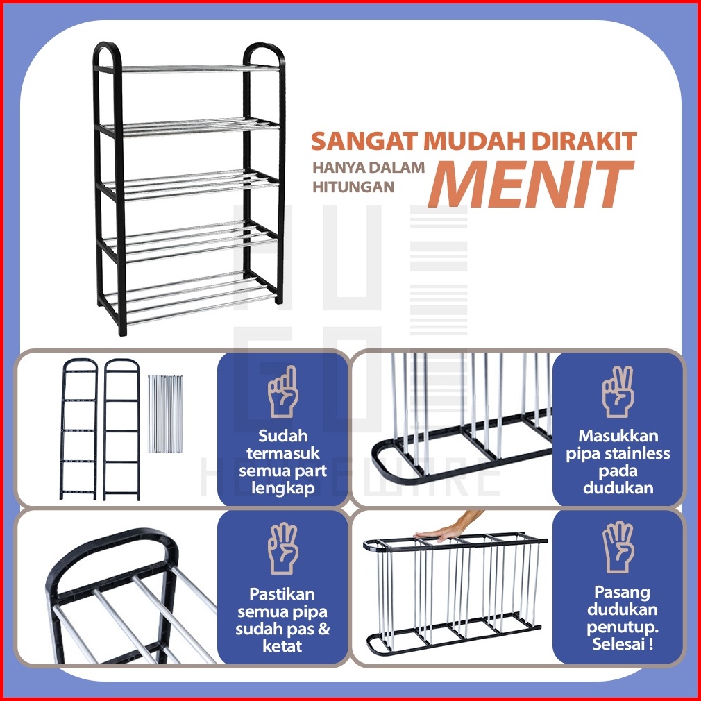 Hugo Rak Sepatu 4 Dan 5 Susun Portable Serbaguna Stainless Steel Tempat Sepatu Sandal Premium