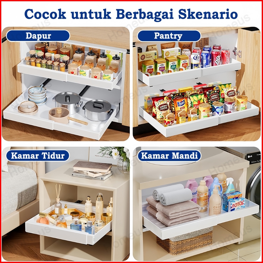 Homeus Rak Piring Rak Dapur Peralatan Makan Pengering Piring Lemari Dapur Tarik Keluar Rak Piring Penyelenggara Rak Peny