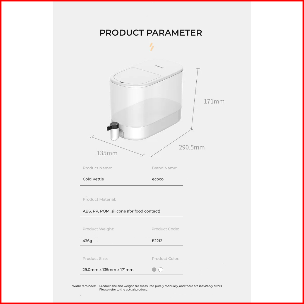 Ecoco Cold Kettle - Box Minuman Dingin Estetik Modern Dengan Keran Buka Tutup