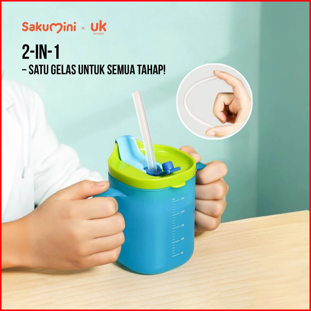 Sakumini 2in1 Training Duckbill Straw Cup Gelas Minum Sedotan Anak