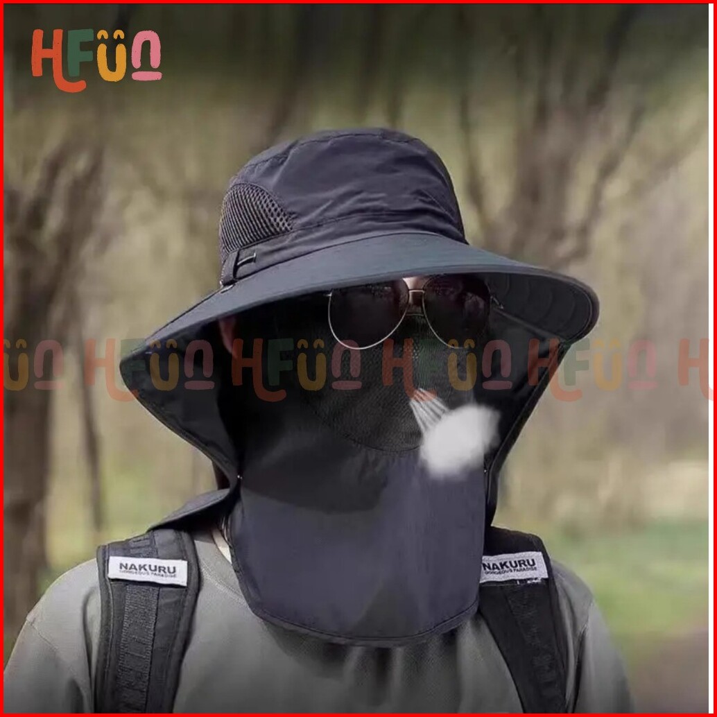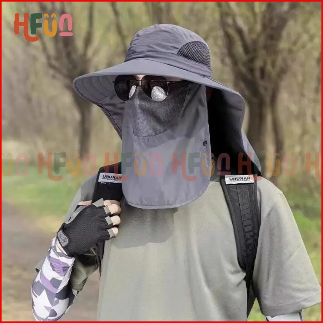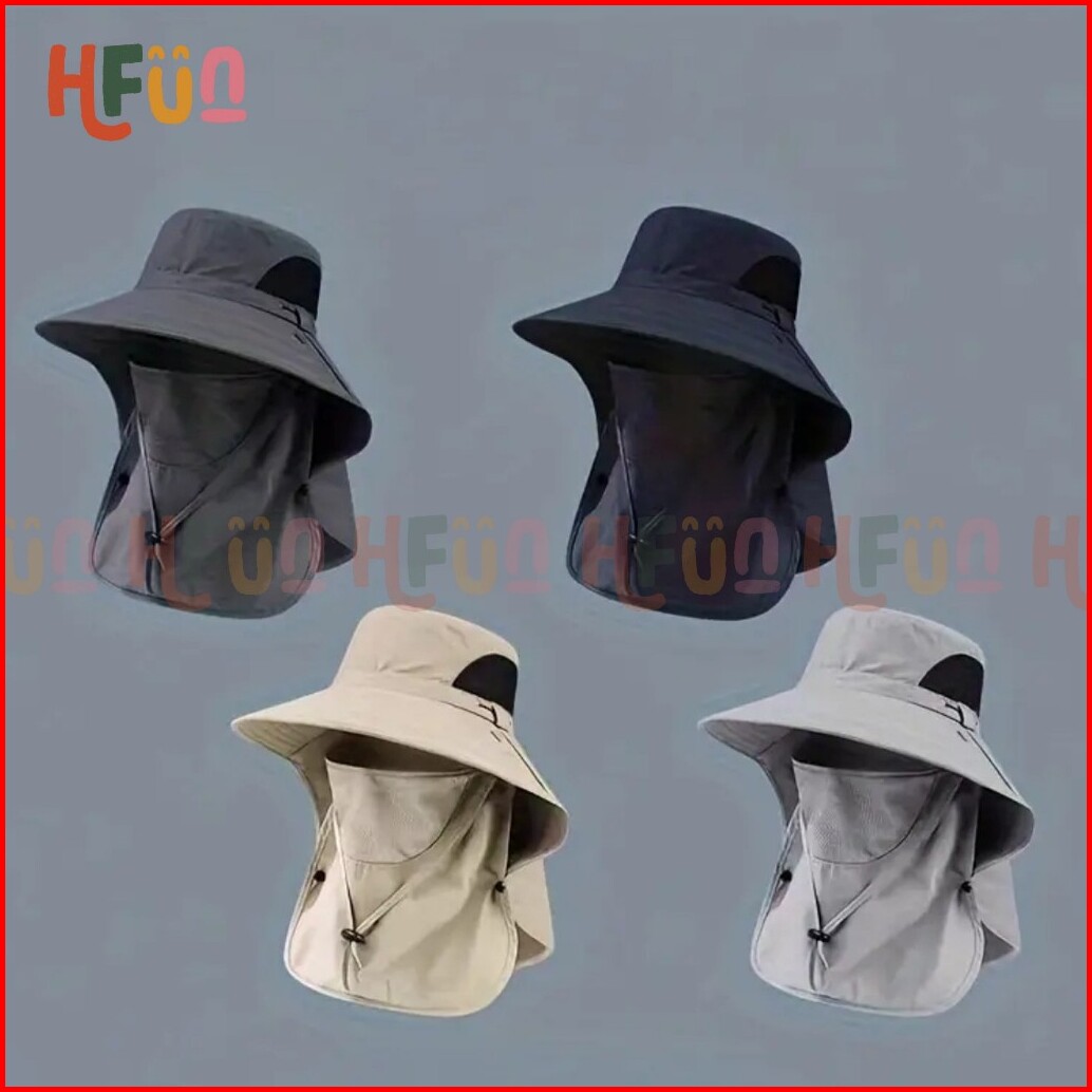 Hfun Topi Anti-uv Visor Lebar Dengan Masker Untuk Pria Dan Wanita Topi Pantai Mancing Hiking Berkebun Dan Sempurna Untuk