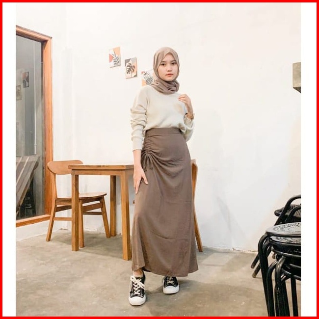 Rx Fashion- Rok Serut Katun Twistcone Josep Skirt Casual Flow Tamara Skirt Rok Serut Casual Korean Look Midi Maxi Ruched