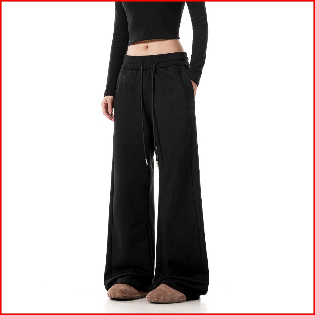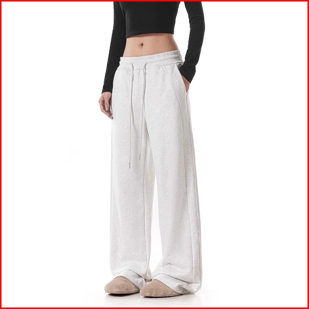 Premium Celana Kasual Lurus Longgar Serut Pinggang Tinggi Wanita