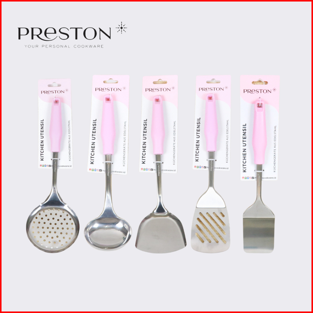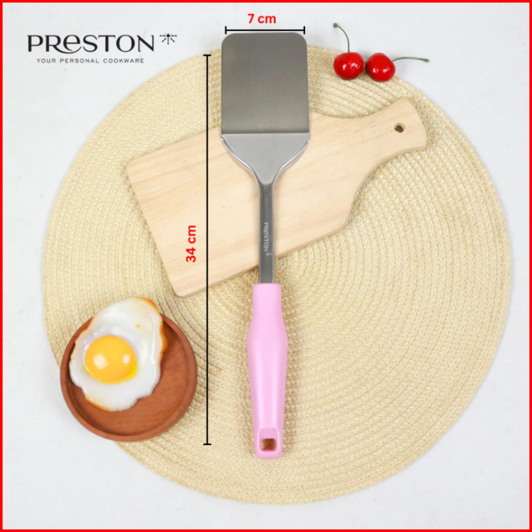 Preston Cookware Spatula Alat Masak Stainless Steel Dengan Gagang Pink Ergonomis Tebal Pink Premium