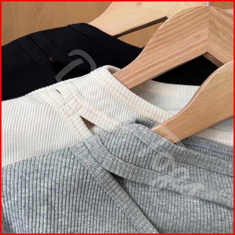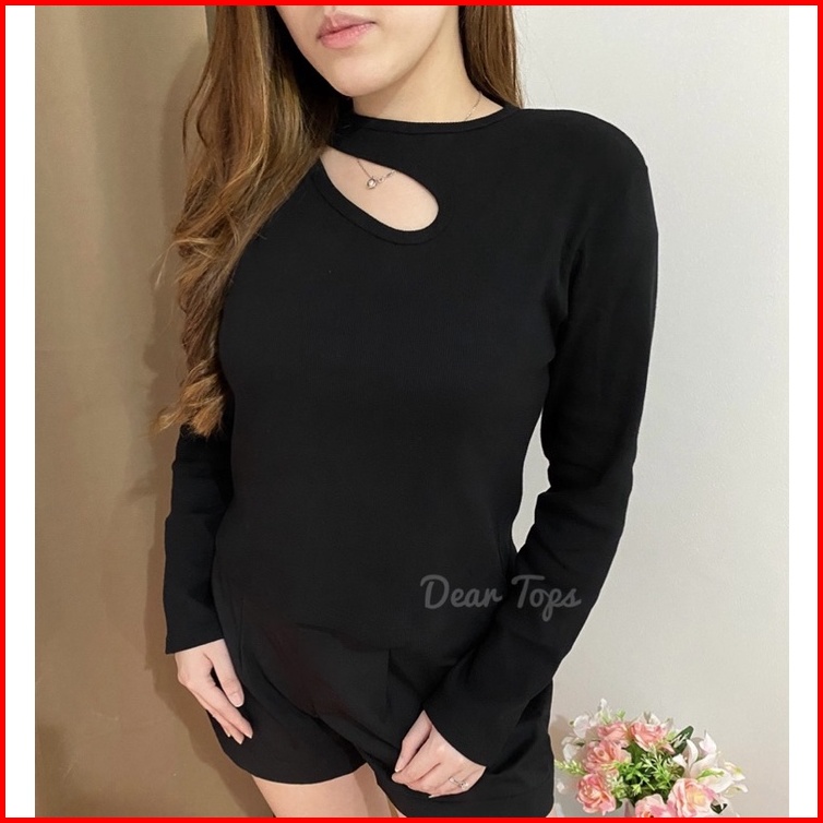 Deartops Zoya Cut Out Top Long Sleeve Atasan Lengan Panjang Wanita Bahan Rib Knit Premium Korean Blouse Basic Wear
