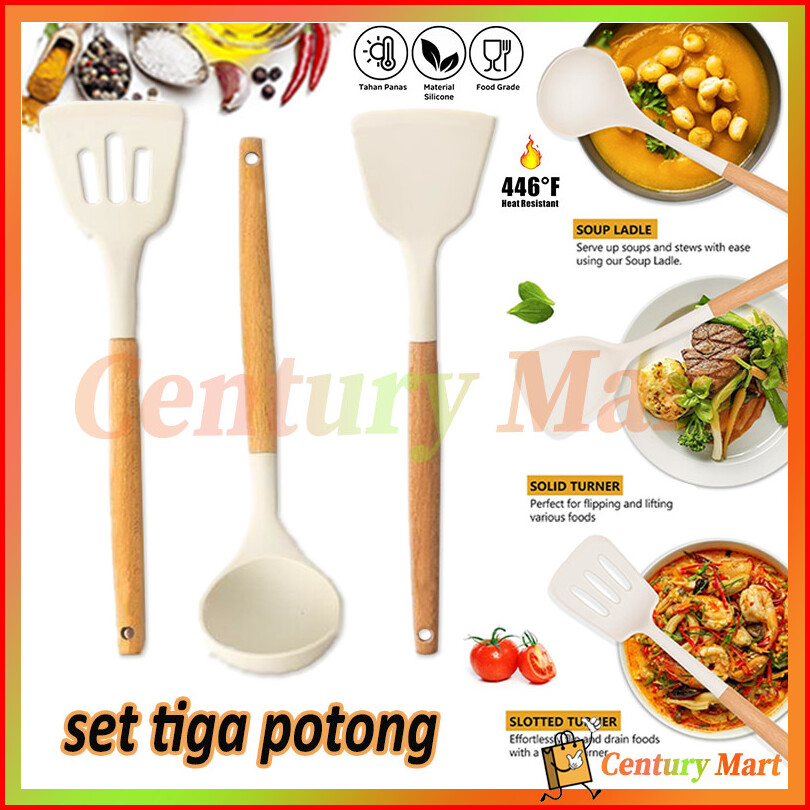 Silicone Utensil 3pcs Silicone Utensil Spatula Spatula Slotted Silcone Tahan Panas Anti Lumer Baking Set Alat Masak Sili