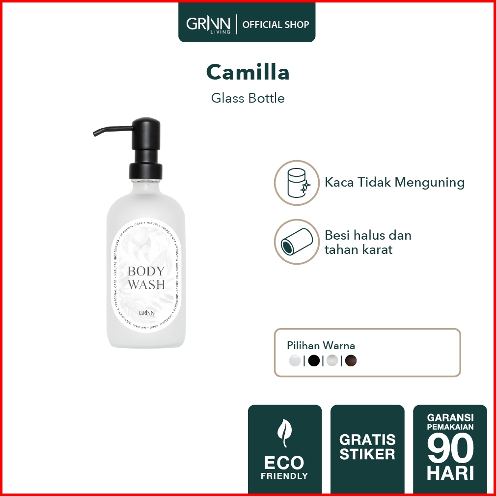 Grinn Living Camilla Botol Kaca Tutup Pump Dispenser Sabun Shampoo Lotion Refill 500ml Aesthetic