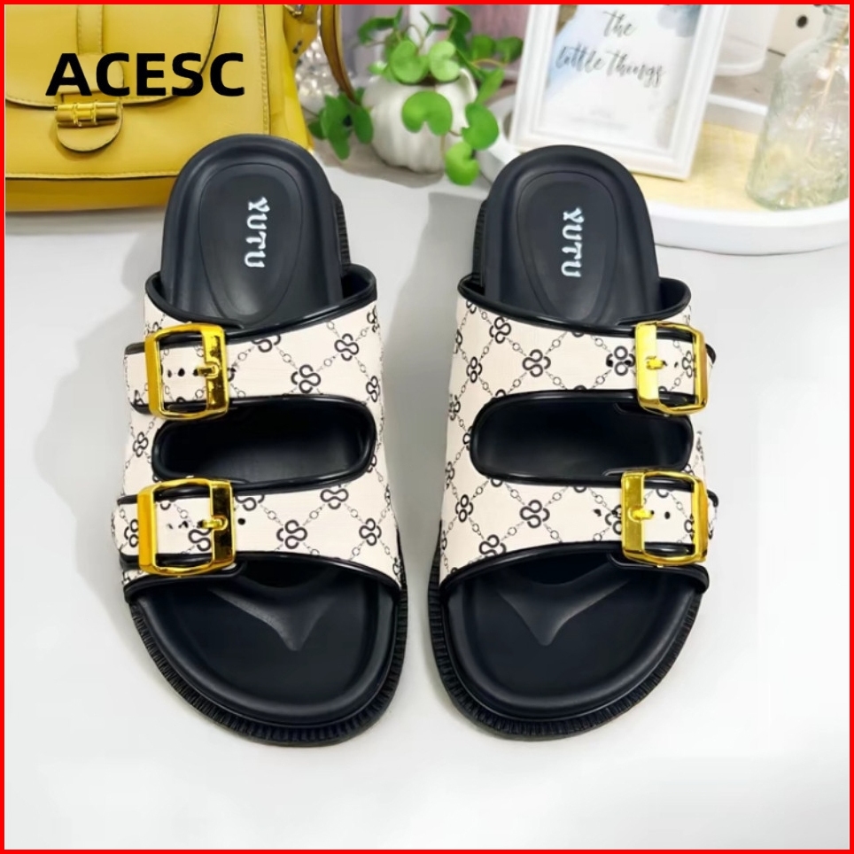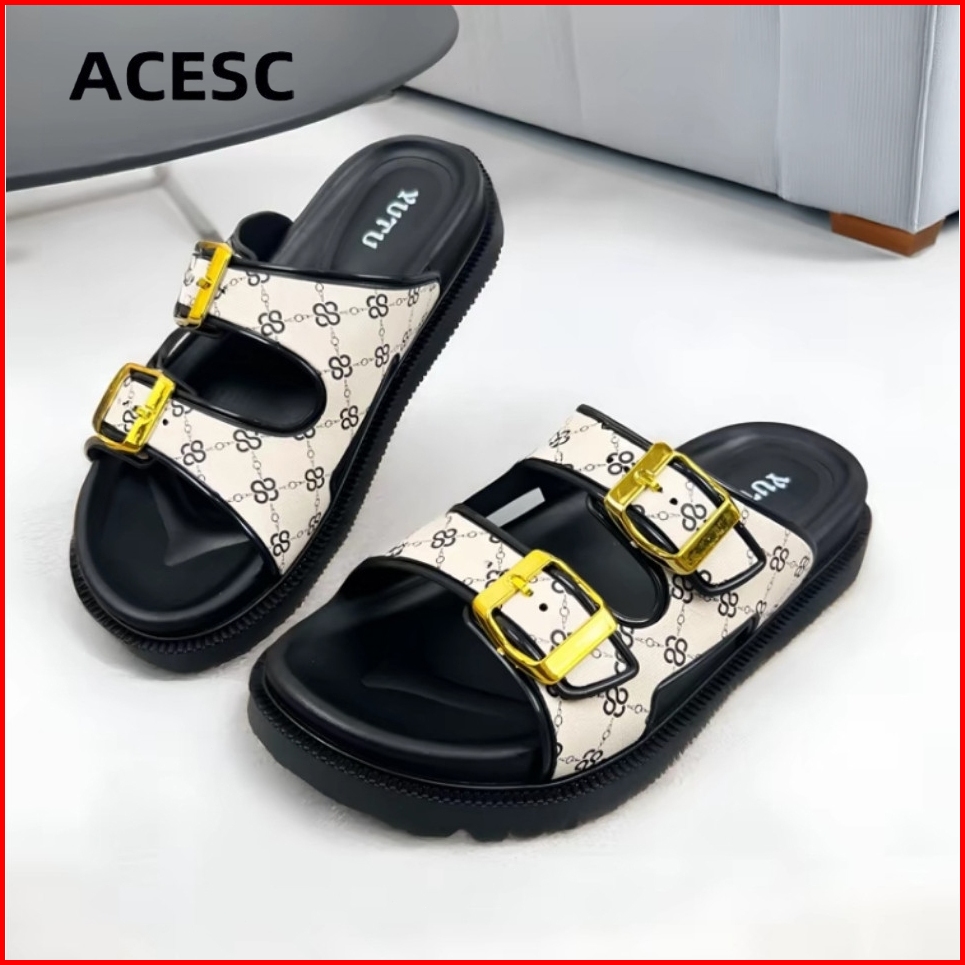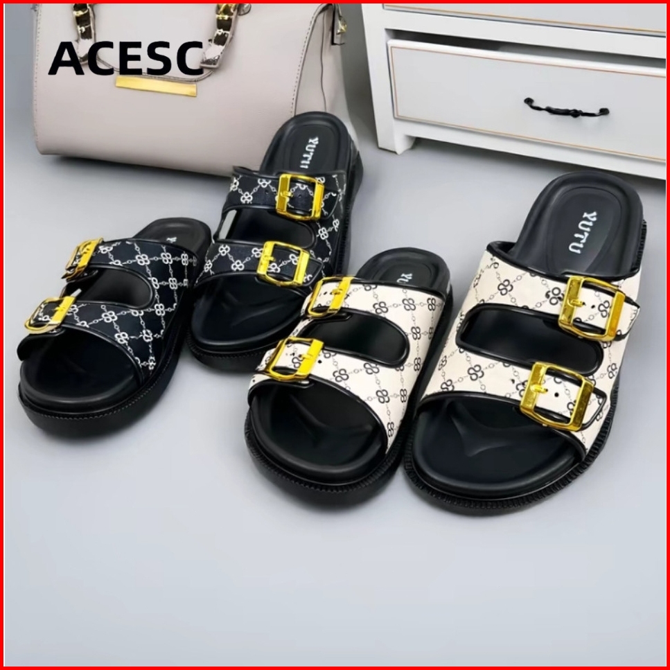 Acesc Sandal Wanita 2025 Gaya Baru Sandal Wanita Fashion Gesper Karet Jelly Sepatu Impor