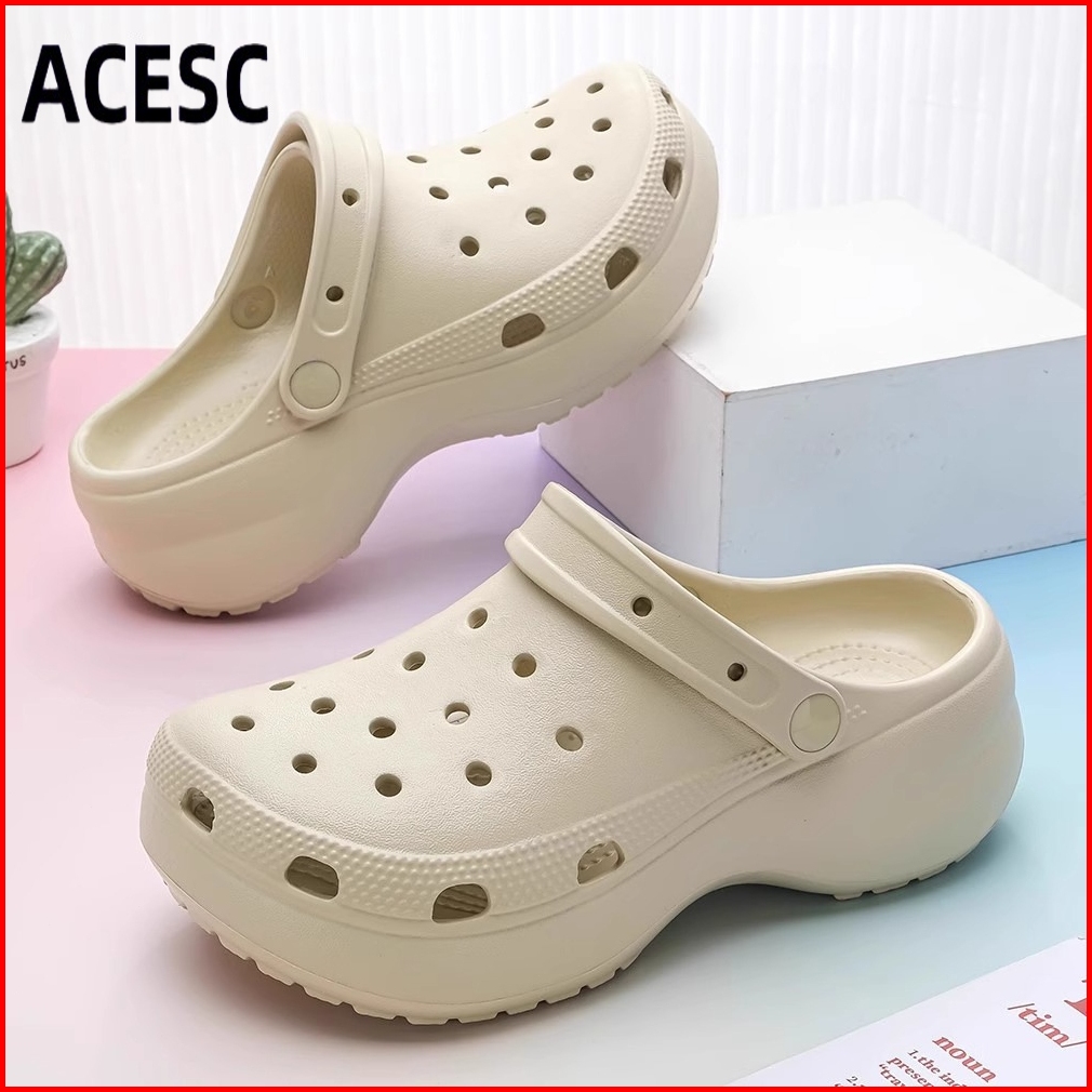 Acesc Sandal Kodok Wanita Kekinian Sandal Jelly Wanita Selop Sandal Baim Jibbitz Wedges Platform