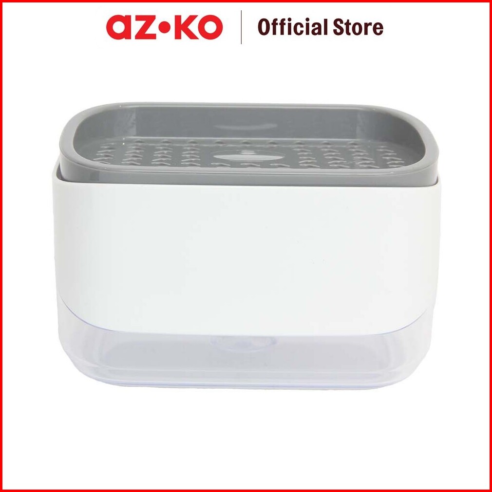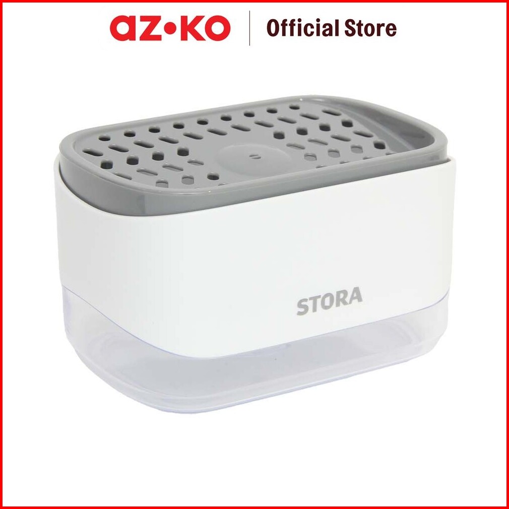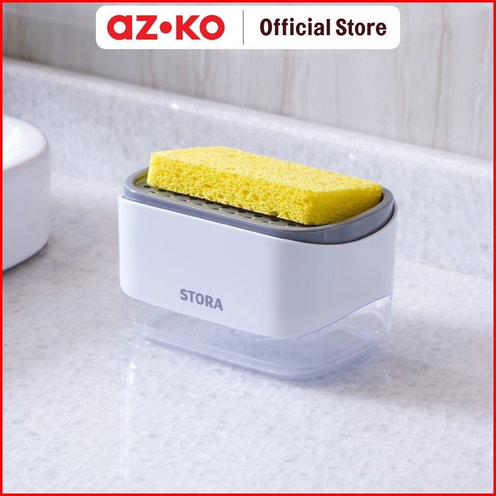 Azko Stora Dispenser Sabun Cuci Piring Dengan Tempat Spons - Putih Wadah Penyimpanan Spons Dan Sabun Dish Spons With Dis