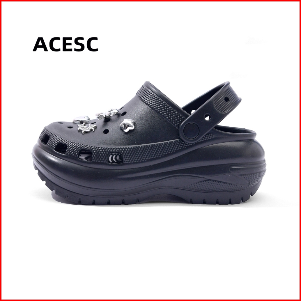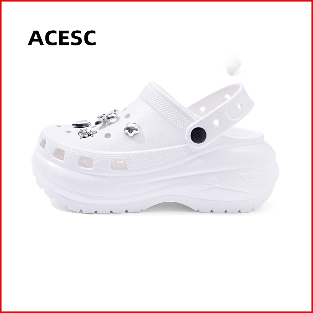 Acesc Sandal Kodok Wanita Wedges Classic Meca Crush Clog Tinggi 7 Cm Perempuan Jibbitz Size 36-41