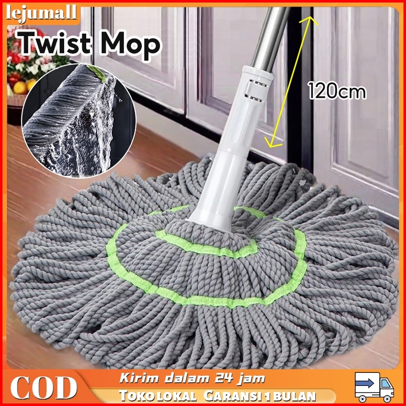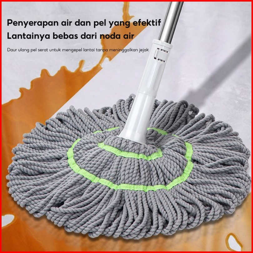 Lejumall Alat Pel Lantai Putar Otomatis Daya Serap Tinggi Twist Mop Microfiber Lepas Pasang Kain Peras Putar Lap Pembers