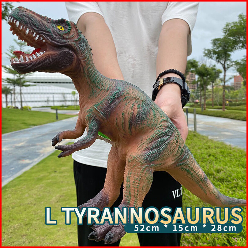 Ready40-50cm Mainan Dinosaurus Besar Vokal Tyrannosaurus Triceratops Velociraptor Model Hewan Karet Lunak Yang Aman Untu