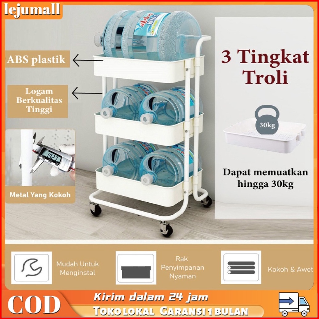 Lejumall Rak Troli Dengan Roda 3 Susun Serbaguna Rak Dapur Dengan Keranja Stainless Rak Buku Portable Rak Bumbu Dapur Ra
