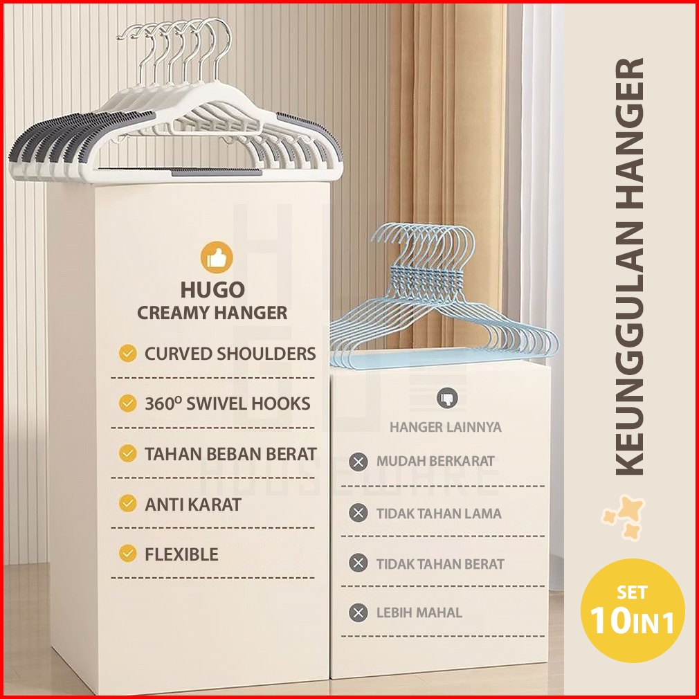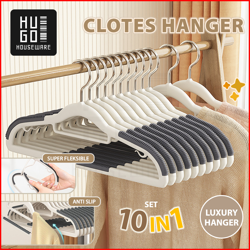 Hugo Hanger Gantungan Baju Dewasa Gantungan Baju Anti Slip Isi 10 Pcs Hanger Dengan Karet Bahan Tebal