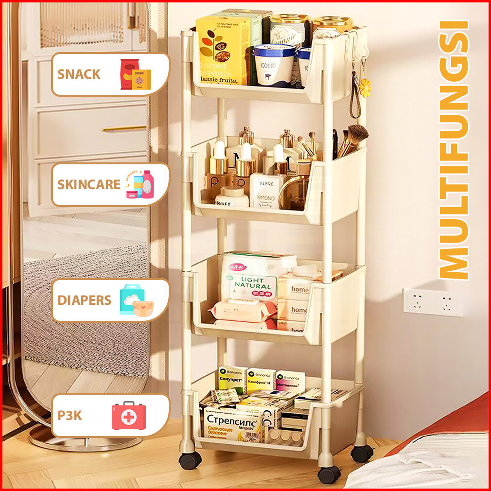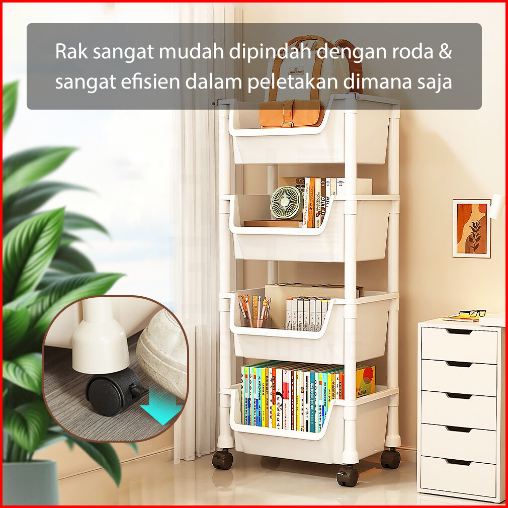 Hugo Rak Troli Serbaguna Rak Penyimpanan Buku Rak Kamar Mandi Rak Susun Plastik Dengan Roda