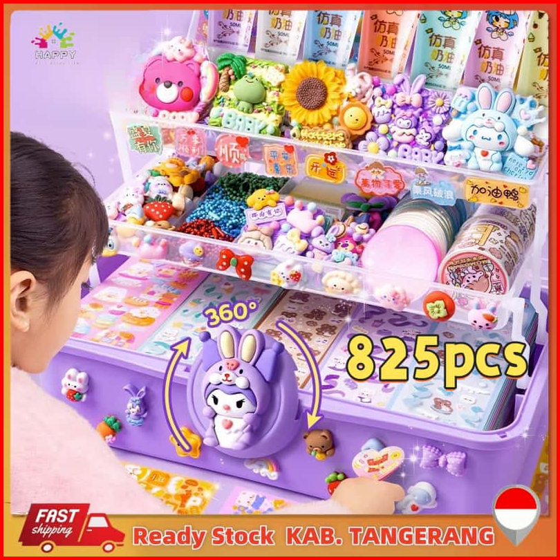 Ready Stock825pcs Diy Gantungan Kunci Akrilik Set Mainan Cream Guka Set Diy Guka Set Stiker Kartu Kotak Cream Gum Guka K