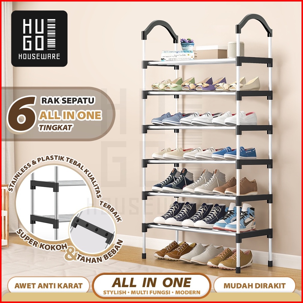 Hugo Rak Sepatu Besi Portable 5 6 7 Susun Kokoh Premium Quality