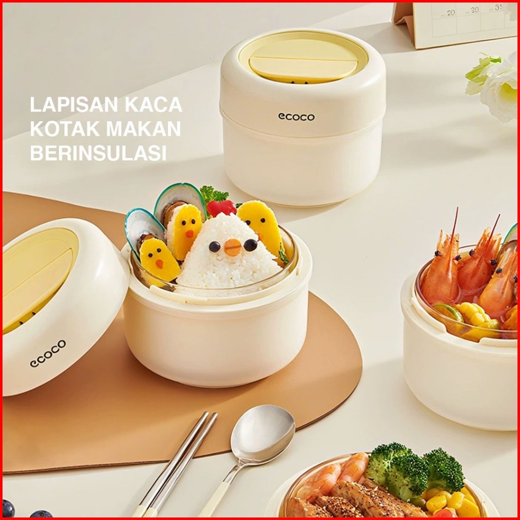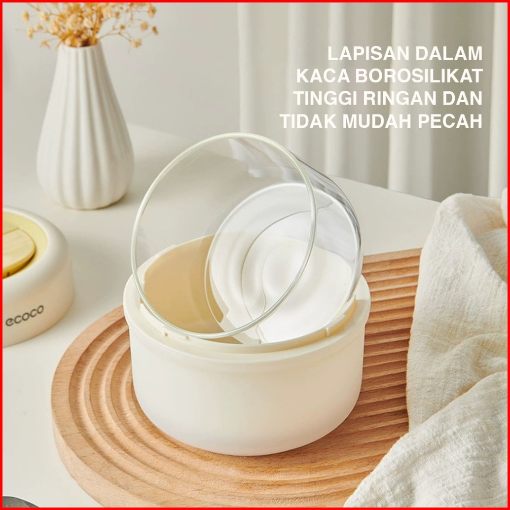 Ecoco Glass Insulated Lunch Box - Kotak Makan Kaca Berinsulas Kotak Bekal Kaca Tahan Panas Kotak Makan Kaca Anti Bocor K