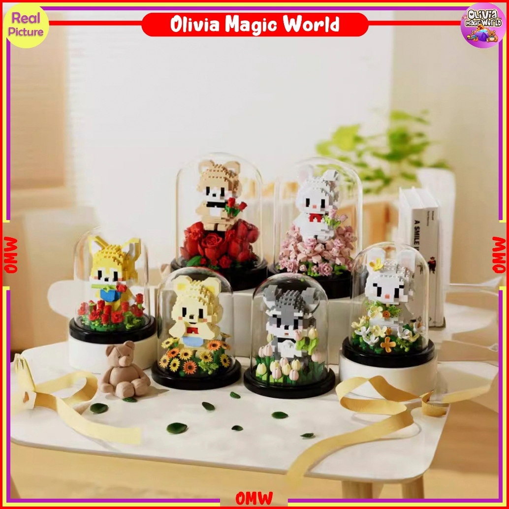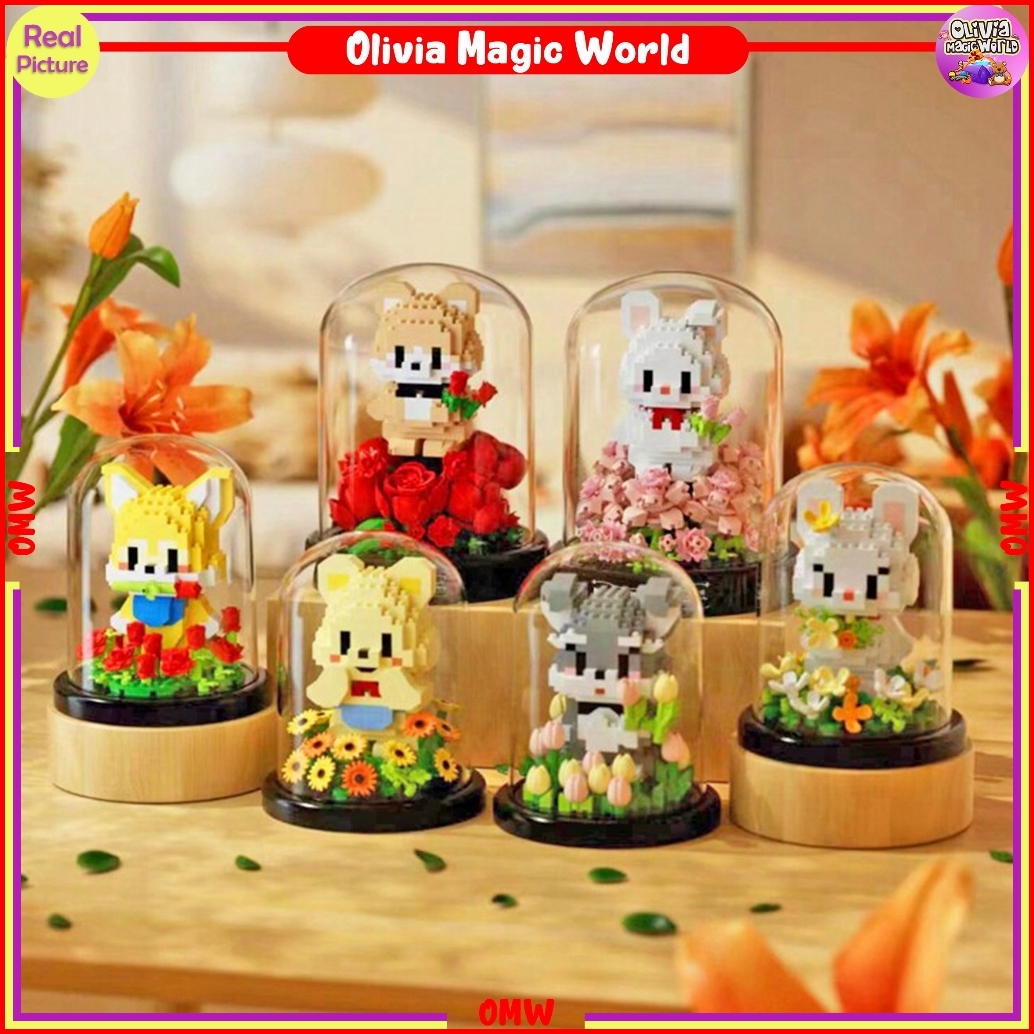 Bricks Nano Block Mainan Edukatif Hewan In Flower Glass Mini Toy Balok Susun Brick Building Omw