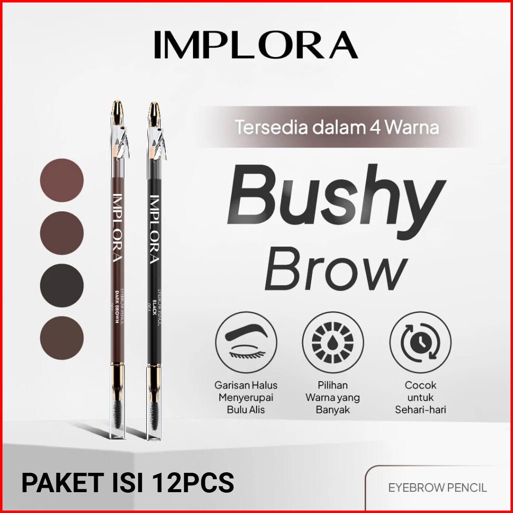 Paket Isi 12 Implora Pensil Alis Eyebrow Pencil - Hitam Black Brown Grey Brown Dark Brown Pensil Alis Implora Bundling 1