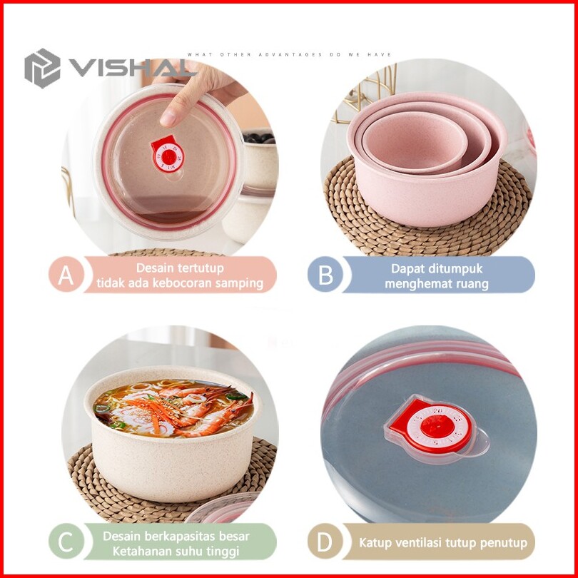 Vishal 3 In 1 Kotak Pengawet Kedap Udara Mangkuk Dengan Penutup Gandum Mangkuk Berkapasitas Besar Vs