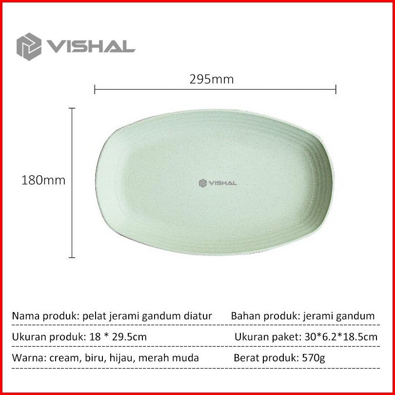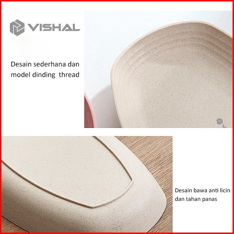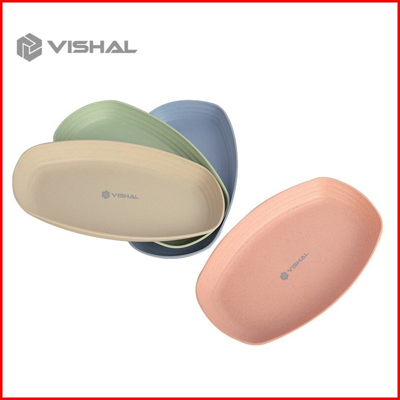 Vishal Piring Jerami Gandum Set Piring Bentuk Oval Kotak Mix Warna Isi 4 Pcs Lonjong Dinner Plate
