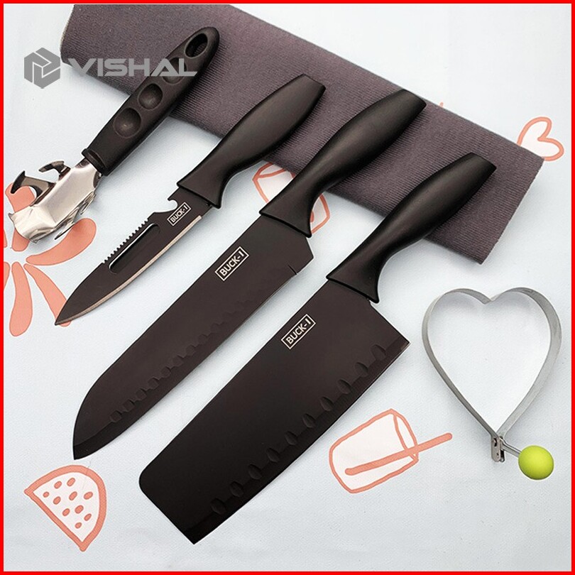 Vishal Set Pisau Dapur Isi 5pcs Hitam Pisau Set 5 Pcs Black Black Kitchen Knife Set 5 Pieces Vs-1811