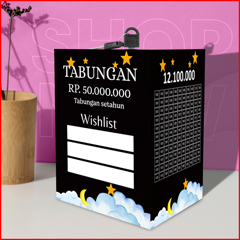 Celengan Viral Kotak Target Jumbo Kunci Kayu Anti Rayap Tabungan 30jt- 50jt100jt Setahun