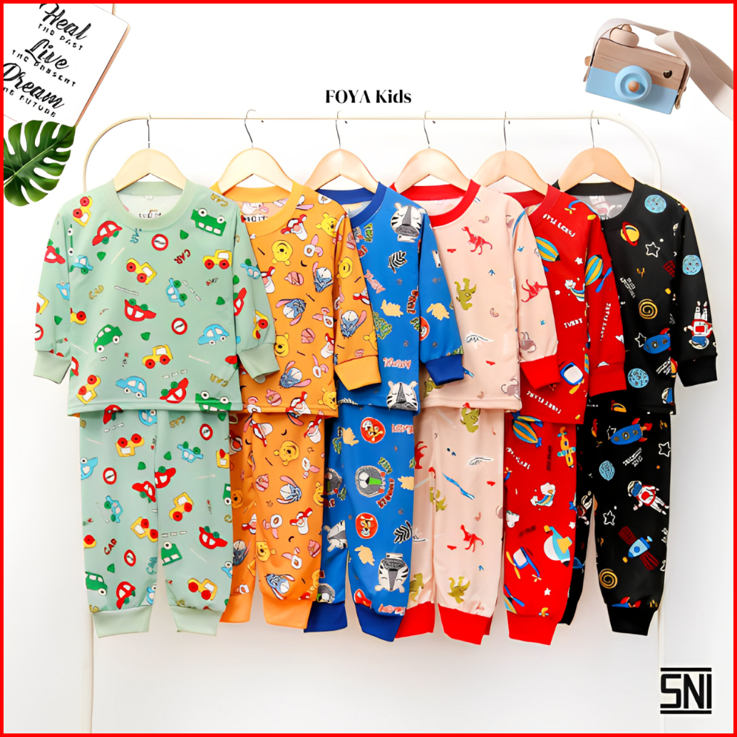 Vnz Kids - Setelan Murah Cowok Cewek Setelan Premium Celana Panjang Usia Bayi - 6 Tahun Setelan Baju Tidur Motif