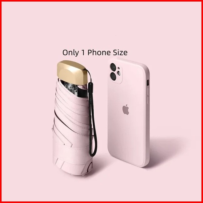 Payung Lipat Mini Anti Uv Ringan Tahan Panas Hujan Sinar Matahari Premium Lapis Hitam Upf50