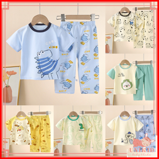 Unikid Setelan Anak Laki-laki 0-5 Tahun Piyama Anak Baju Anak Perempuan Baju Pendek Dan Celana Panjang Katun