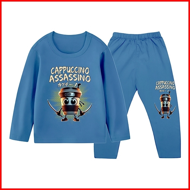 Piyama Baju Tidur Anak Laki-laki Gambar Cappuccino Kaos Dan Celana Panjang Ukuran S Sampai Xxl Zm-1764