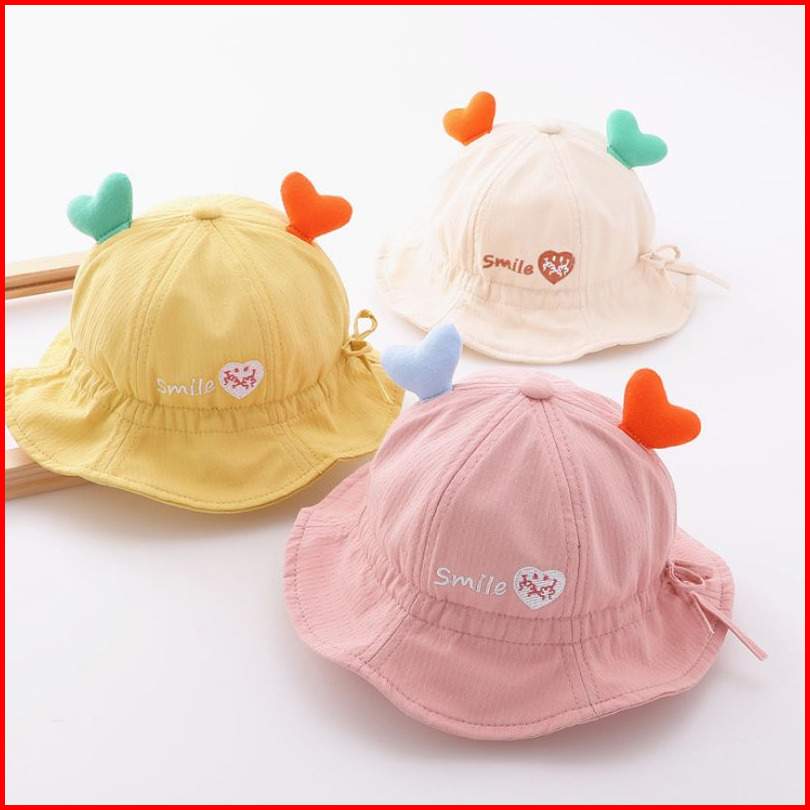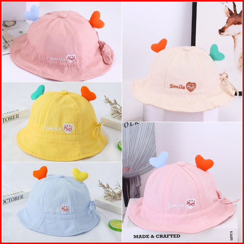 Topi Bucket Fashion Newborn Bayi Balita Motif Smile Love Baby Basin Hat Topi Pantai