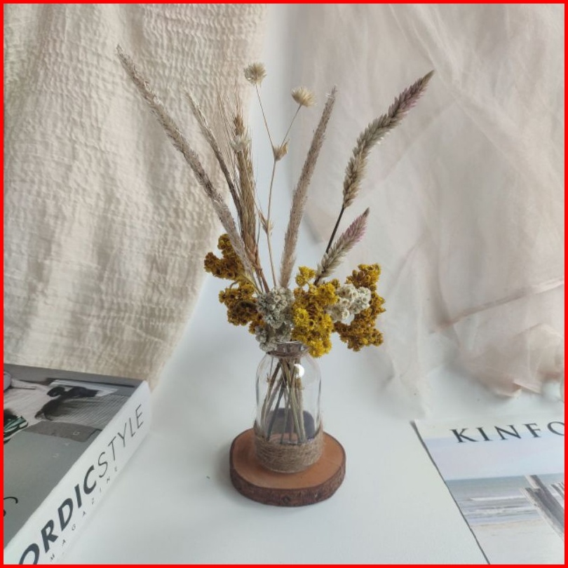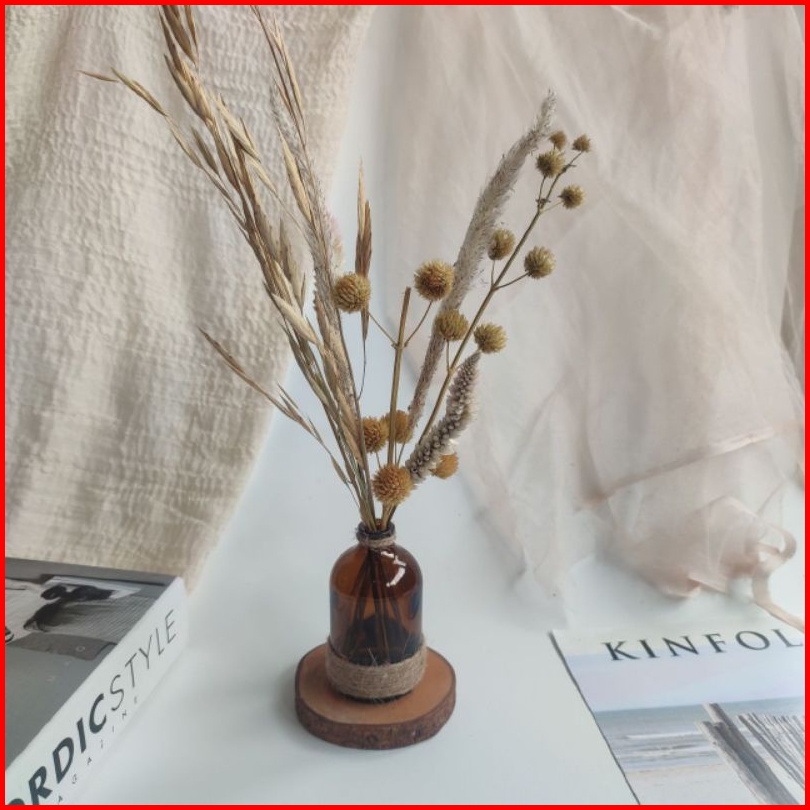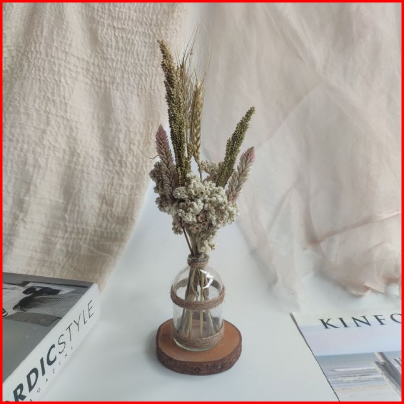 Lallisa Set Satu Set Bunga Kering Dried Flowers Vas Kaca Vas Nordic Vas Kayu Vas Rotan Hiasan Meja Hasan Dinding Dekoras