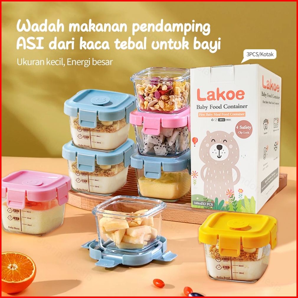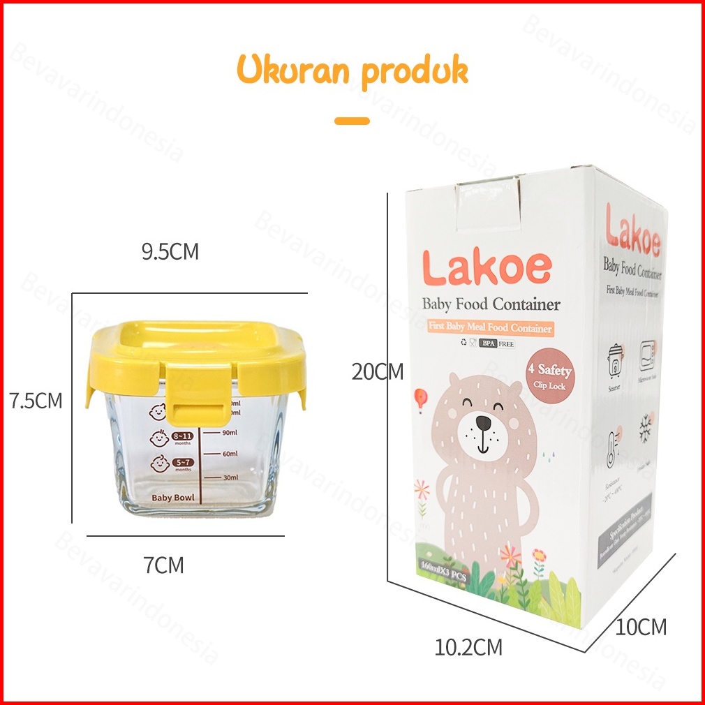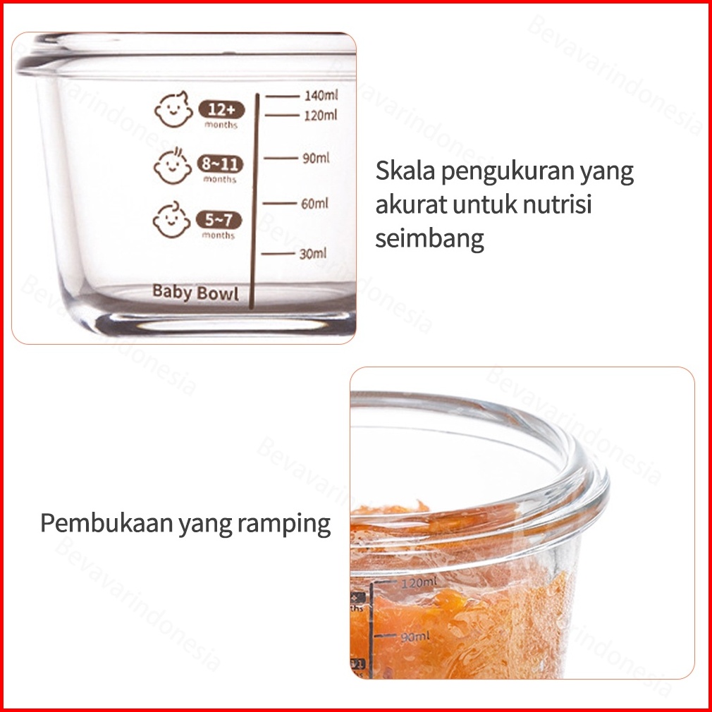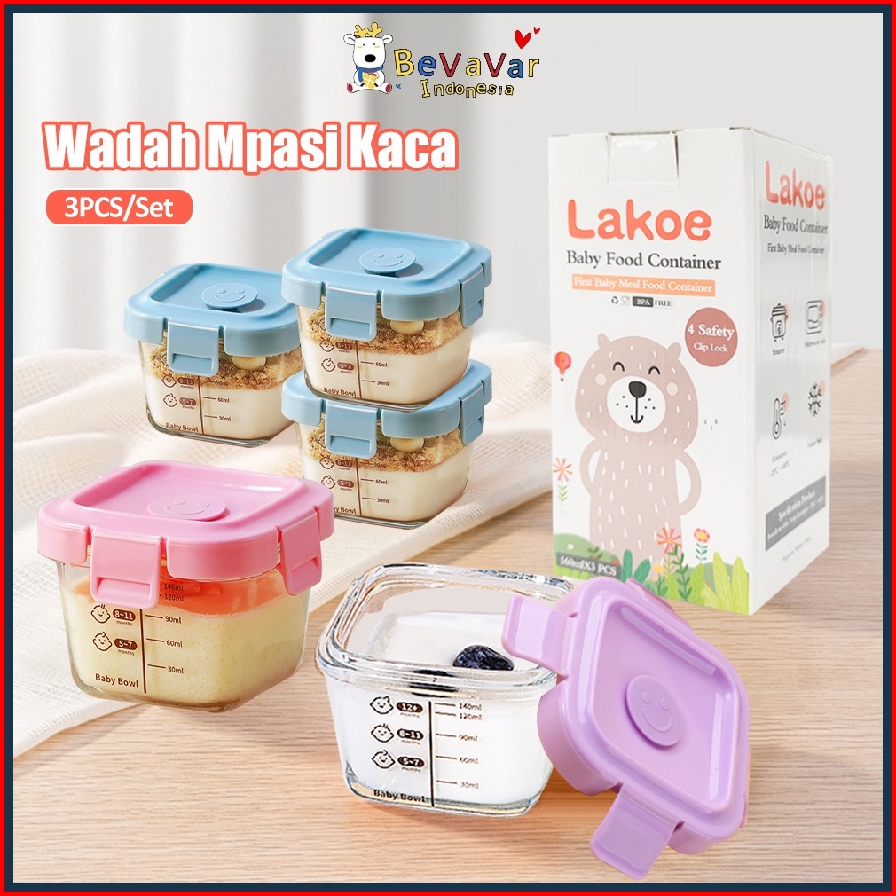 Bevavar 3pcs Set Wadah Mpasi Bayi Kaca Tempat Makan Bayi Baby Food Container