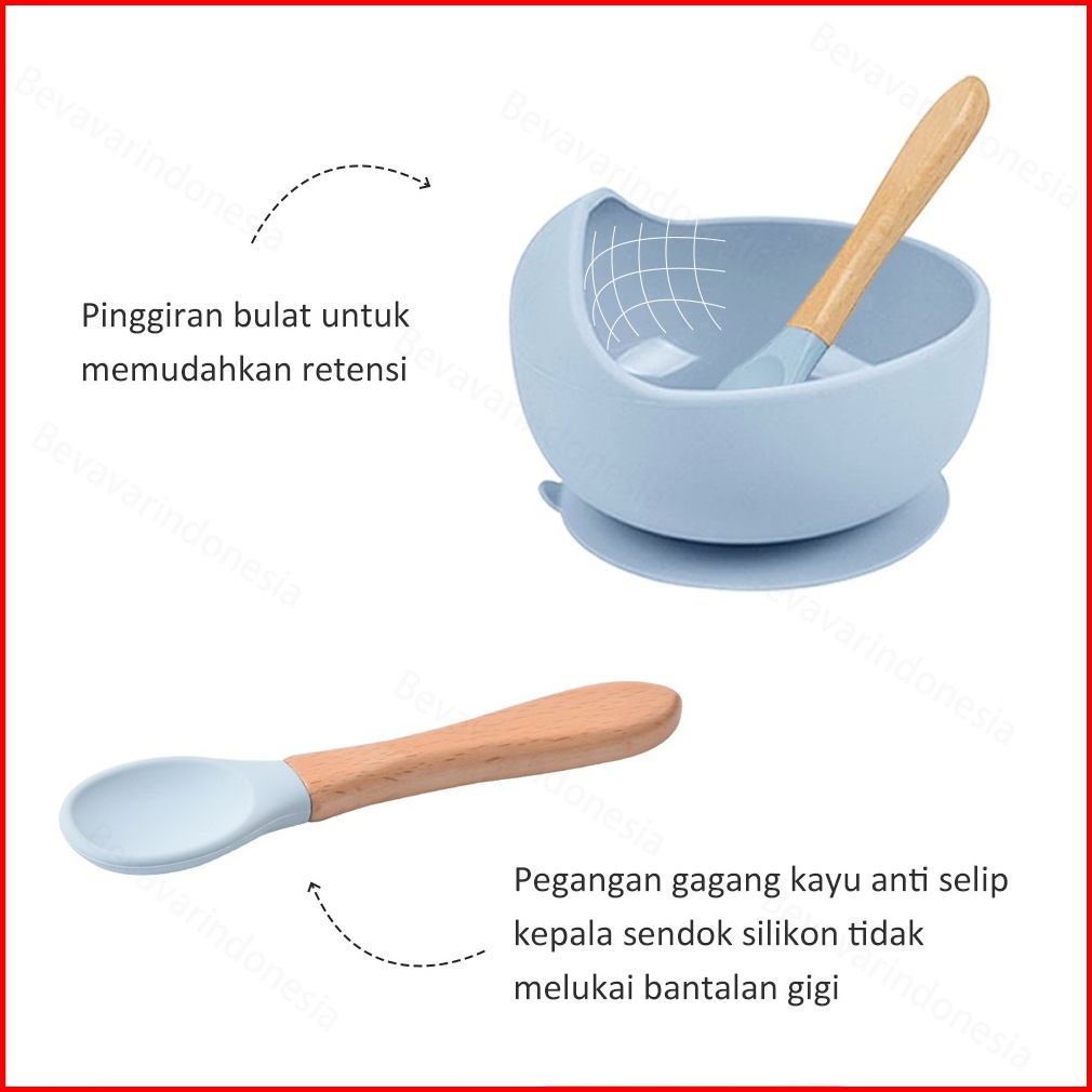 Bevavar 3in1 Alat Makan Bayi Set Waterproof Celemek Bayi Silikon Dan Mangkuk Sendok Baby Feeding Set
