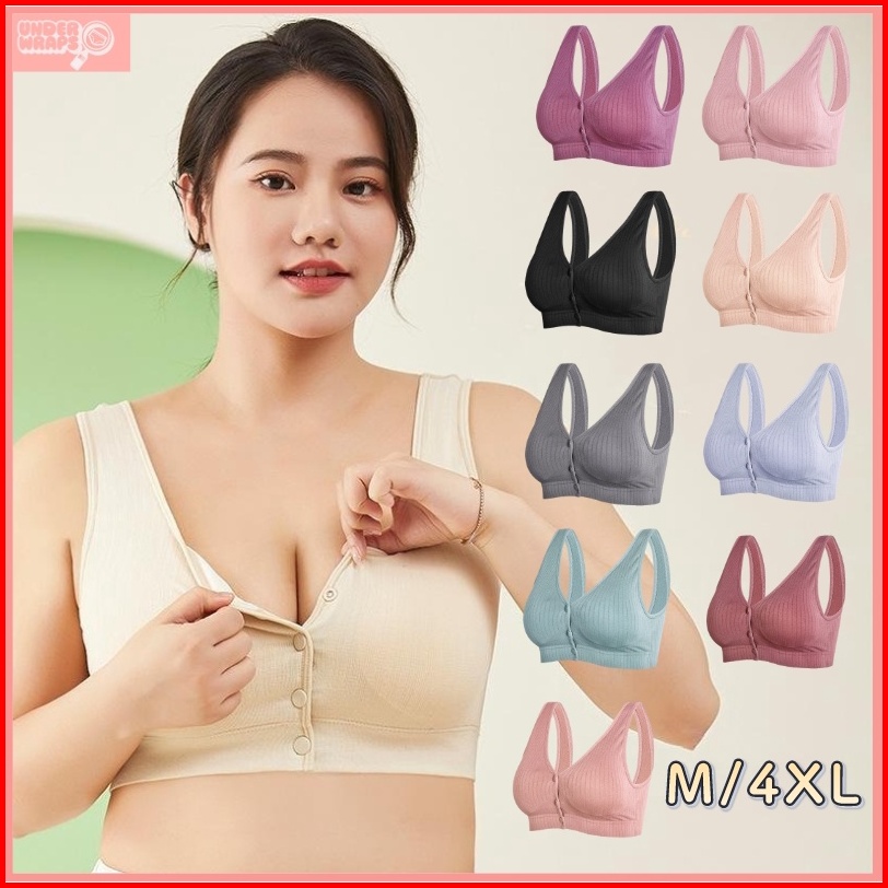 Kancing Depan Bra Menyusui Tanpa Kawat Katun Murni Bh Wanita Dapat Dipakai Tidur Ukuran Besar 1018bra