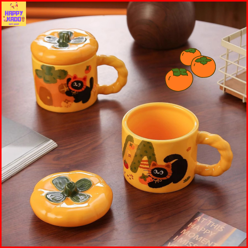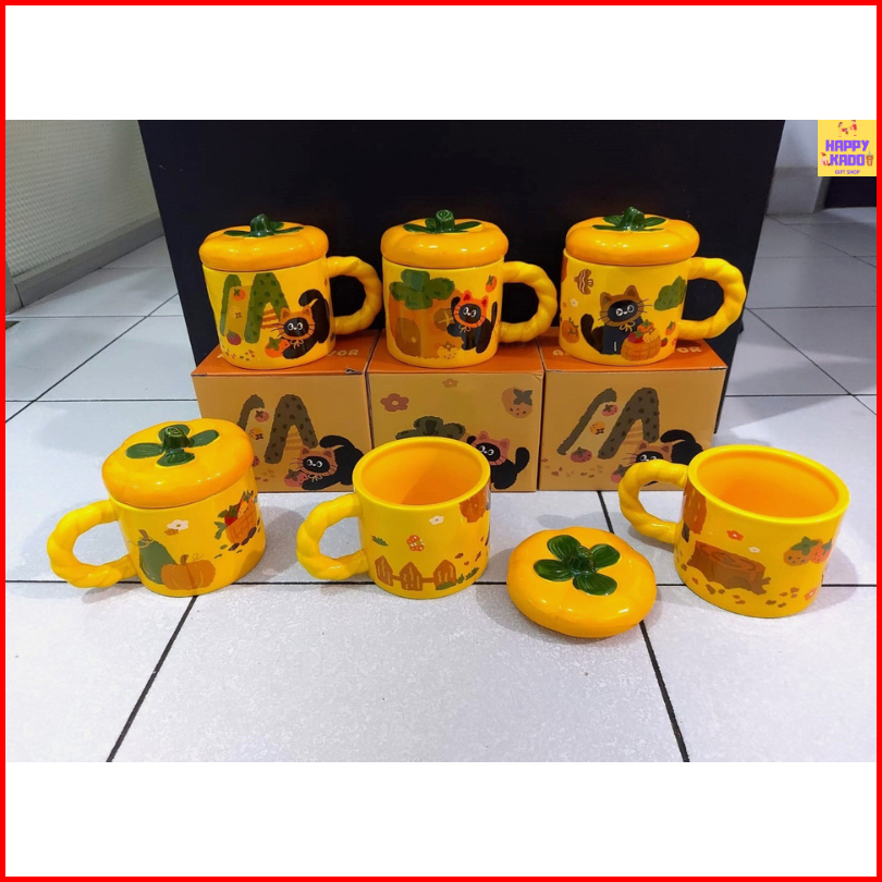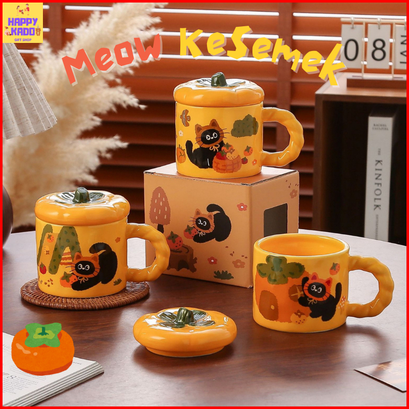 Gelas Mug Kucing Hitam Hello Meong Aesthetic Keramik Imut Kotak Cantik Hadiah Ultah Natal Valentine
