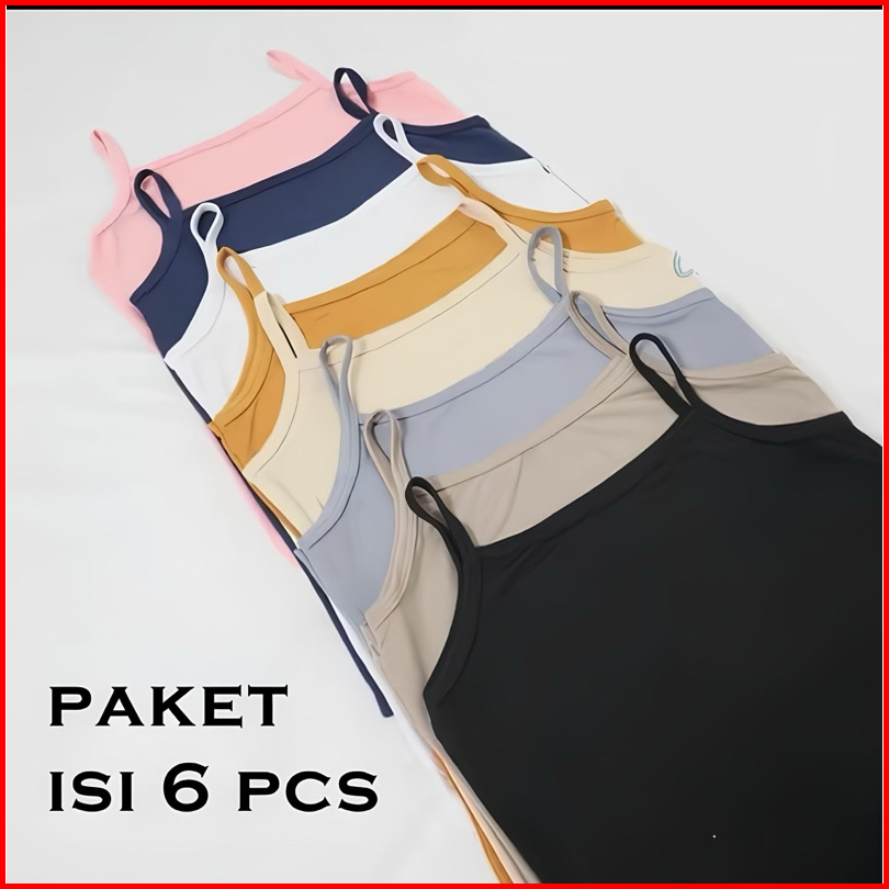 6 Pcs Tanktop Daleman Wanita Singlet Perumpuan Remaja Dewasa Tali Kecil Tengtop Cewe Dewasa
