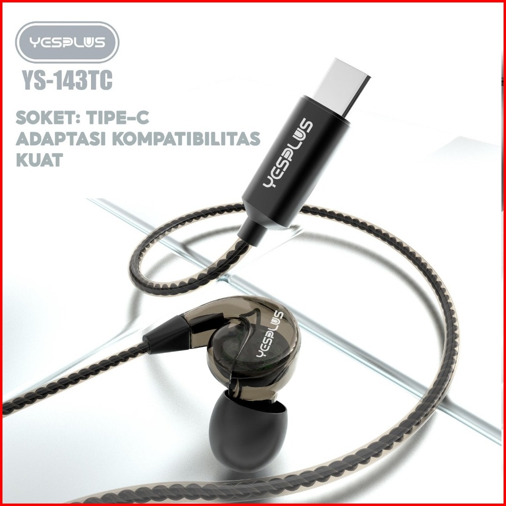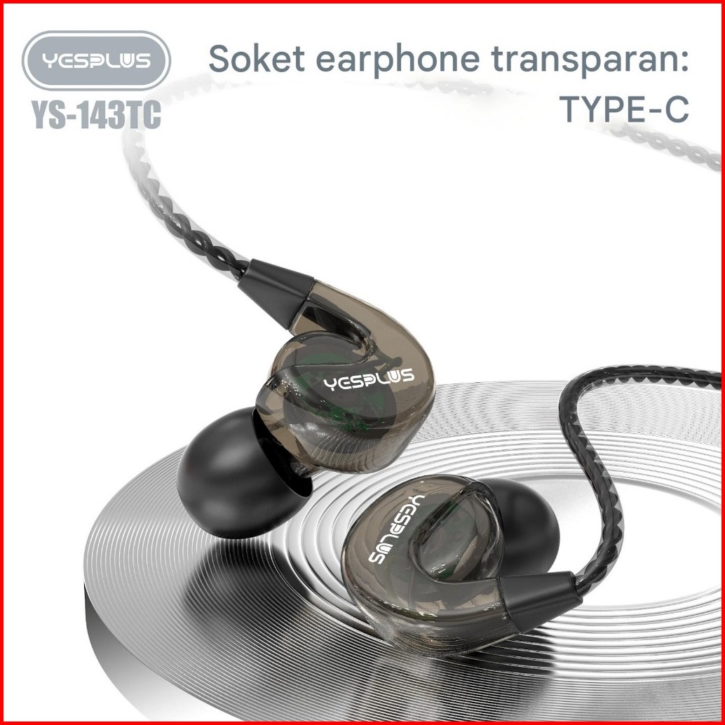 Headset Yesplus Ys-143 Type-c 3d Subwoofer Headset Powerful Bas Plug And Play Transparent Wired Body