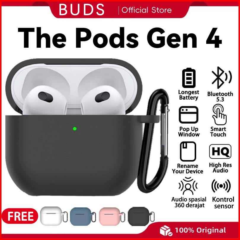 Buds Tws Pods Gen4 Earphone Bluetooth Headset 9d Hifi Stereo Iphone Free Premium Silicone Softcase With Hook For Pods Ge