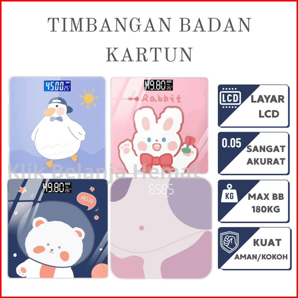 Terbaru Timbangan Badan Kaca Digital Body Kartun 180kg Timbangan Badan Mini Digital Desain Kartun
