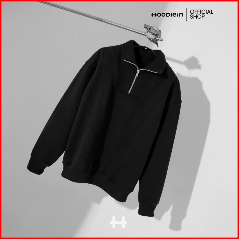 Hoodie.in Half Zipper Cotton Katun Regular Boxy - Black Pria Wanita