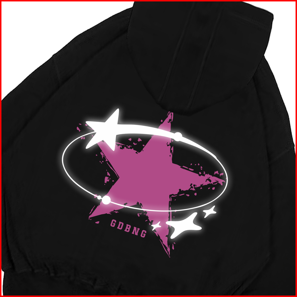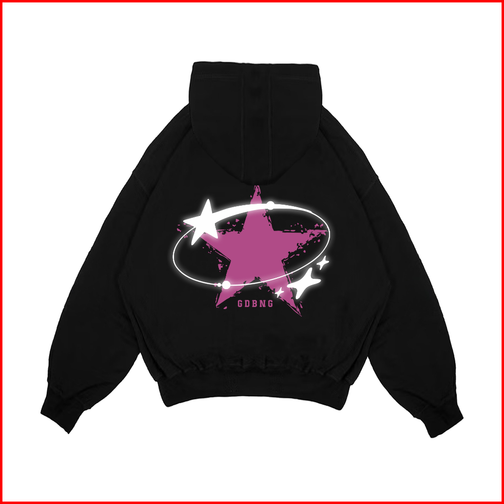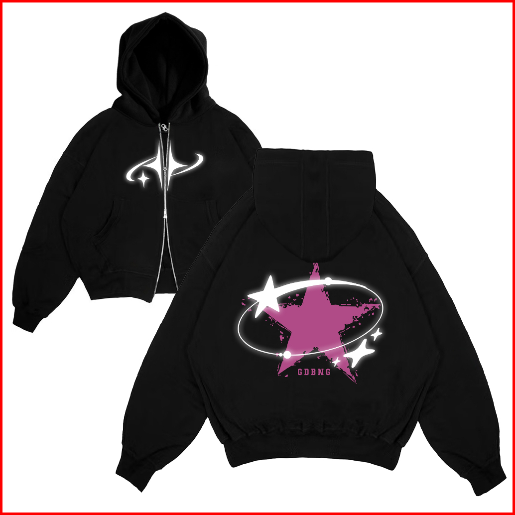 Gadabang Hoodie Boxy Double Zipper Menyala Sablon Reflective Star Hitam