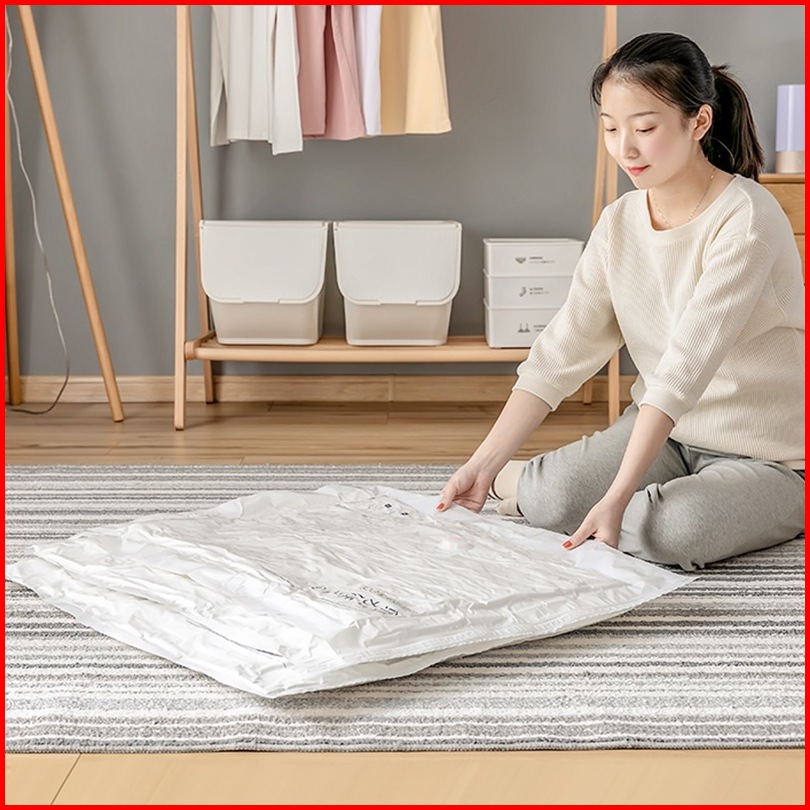 U-living Set 4pcs Plastik Vacuum Dan Pompa Elektrik Vacuum Kantong Pakaian Travel Anti-air Dipakai Berulang Pvs003