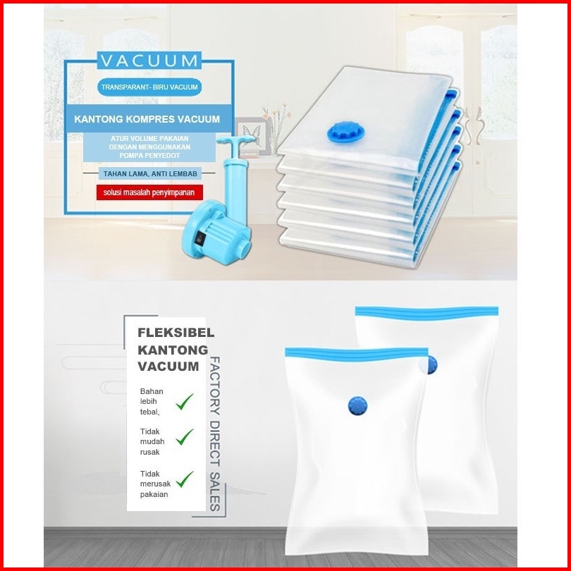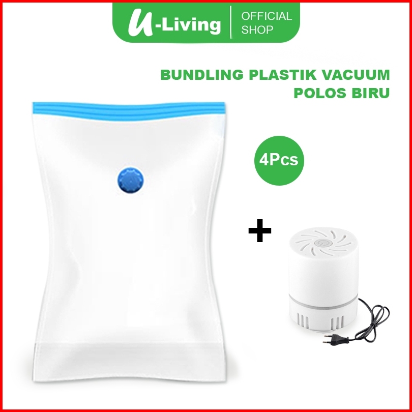 U-living Set 4pcs Plastik Vacuum Dan Pompa Elektrik Vacuum Kantong Pakaian Travel Anti-air Dipakai Berulang Pvs005