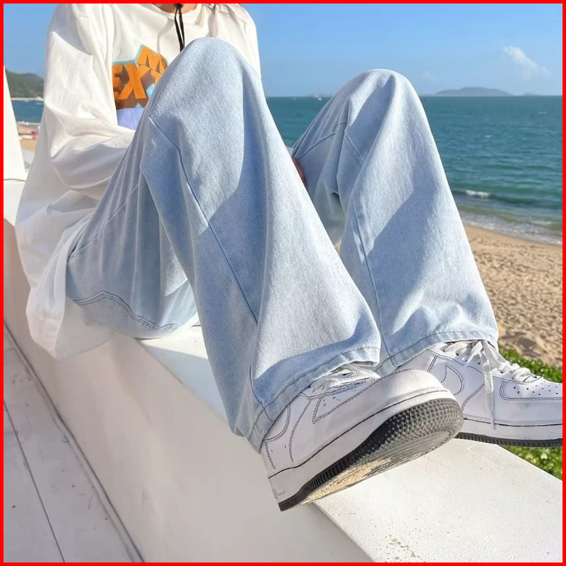 Tamp-x Oversize Jumbo Celana Jeans Pria Baggy Skena Denim Cowok Loose Jeans Korean Style Straight Pinggang Karet