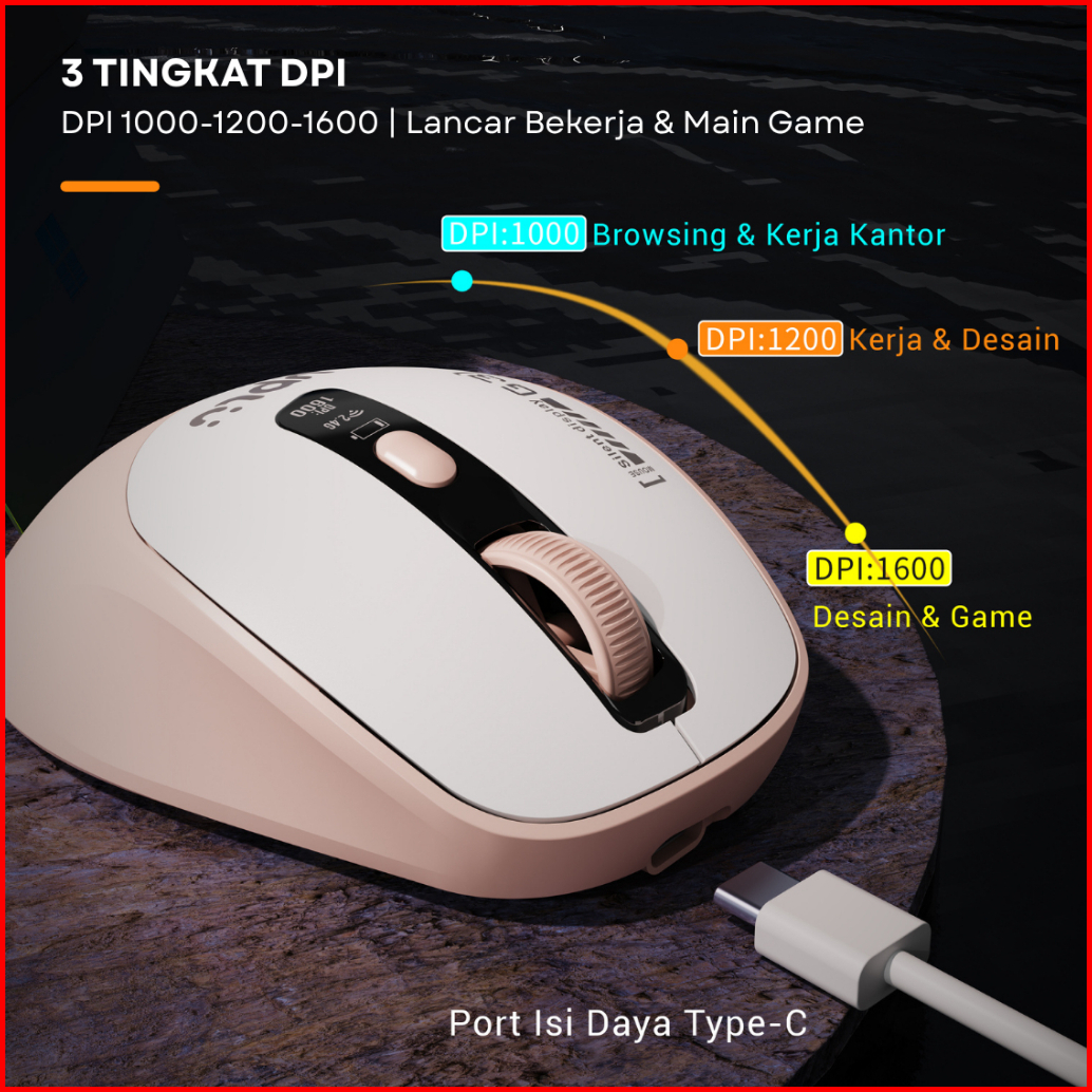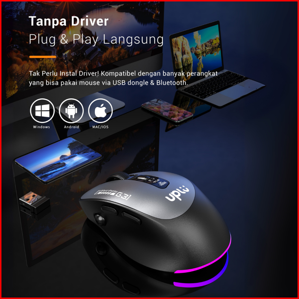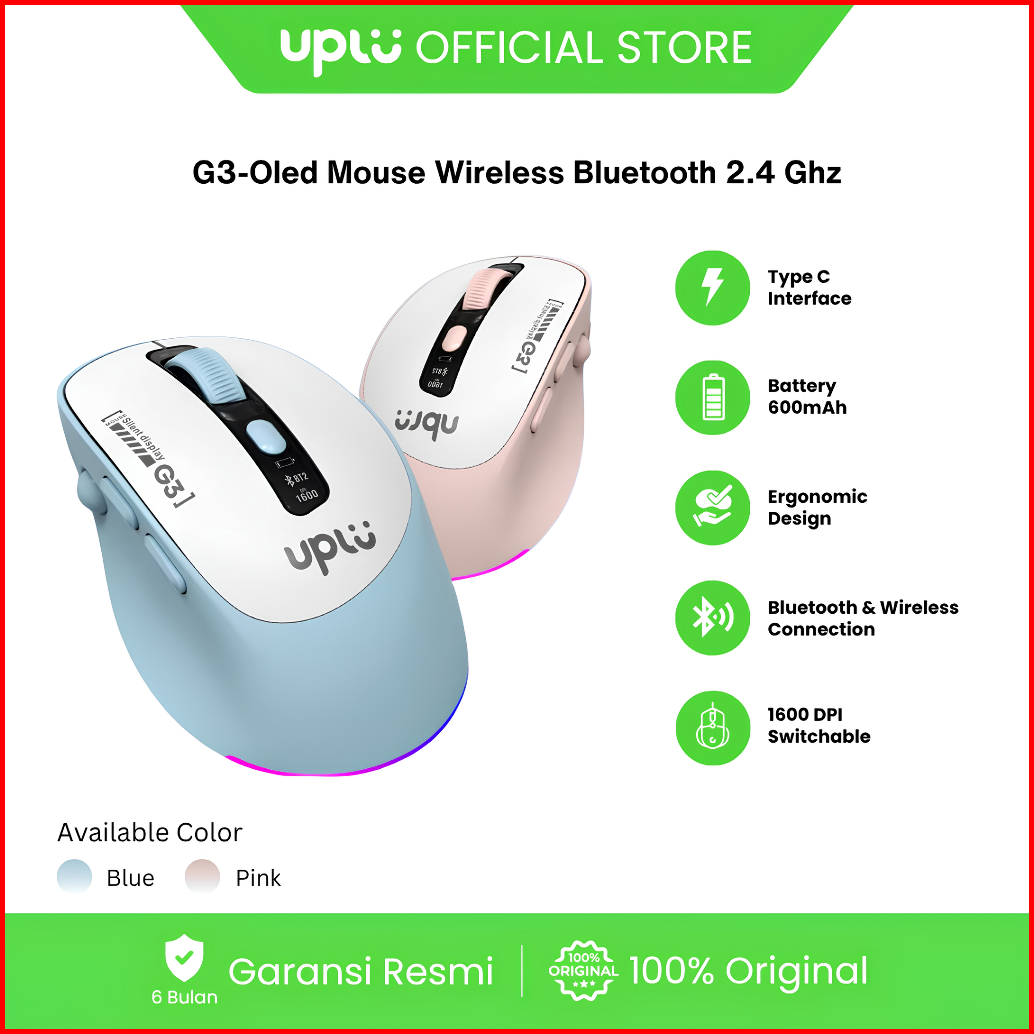 Uplu Mouse Wireless Bluetooth Gaming Silent Click Rechargeable 1600 Dpi Untuk Laptop Tablet Hp